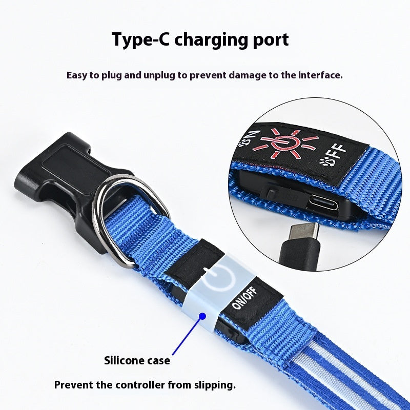 Shiny Dog Collar Double Fiber Pet Night Collar